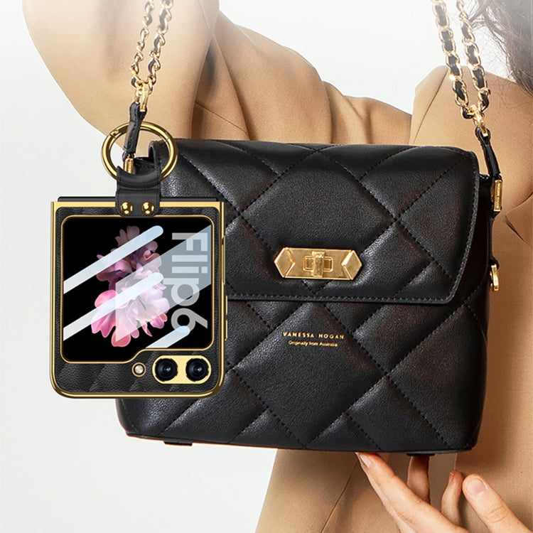 GKK Integrated Plating Diamond Texture PU Phone Case with Ring, For Samsung Galaxy Z Flip6/7 FE, For Samsung Galaxy Z Flip7 5G, For Samsung Galaxy Z Flip5
