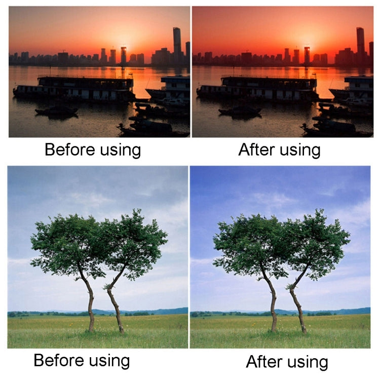 4. The filter could limit the reflection from non-metal surface such as water and glass windows. Using the filters, the colors shall become brighter and clearer and the contrast shall be strengthened.