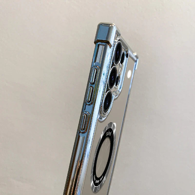 Luxury Plating Magnetic Wireless Charge Case For Samsung S24 Ultra S23 FE S22 Plus S21 S20 Note 20 Clear Lens Protection Cover