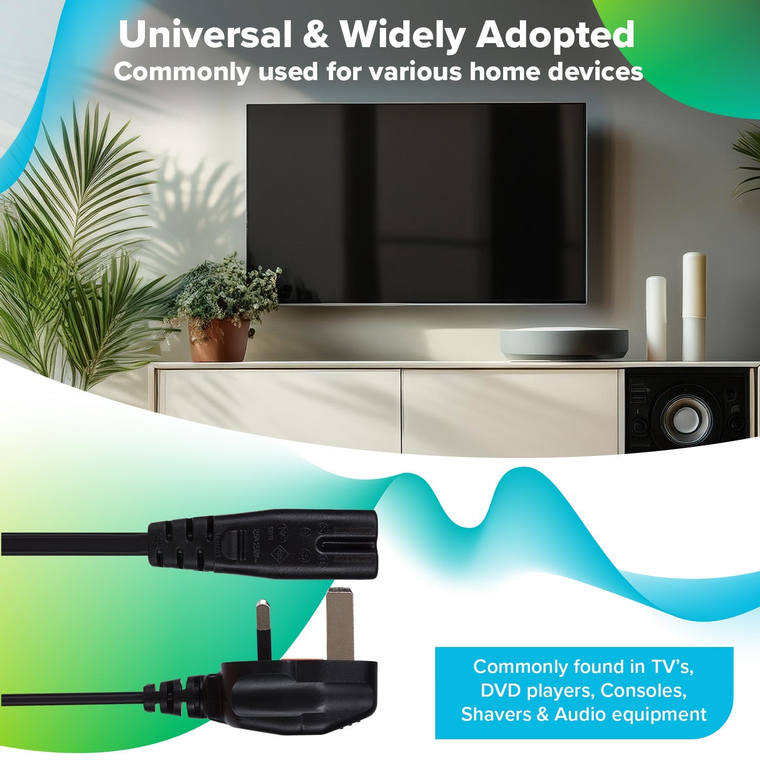 The Maplin Power Lead IEC C7 Fig 8 2 Pin Plug to UK 3 Pin Mains Plug,...