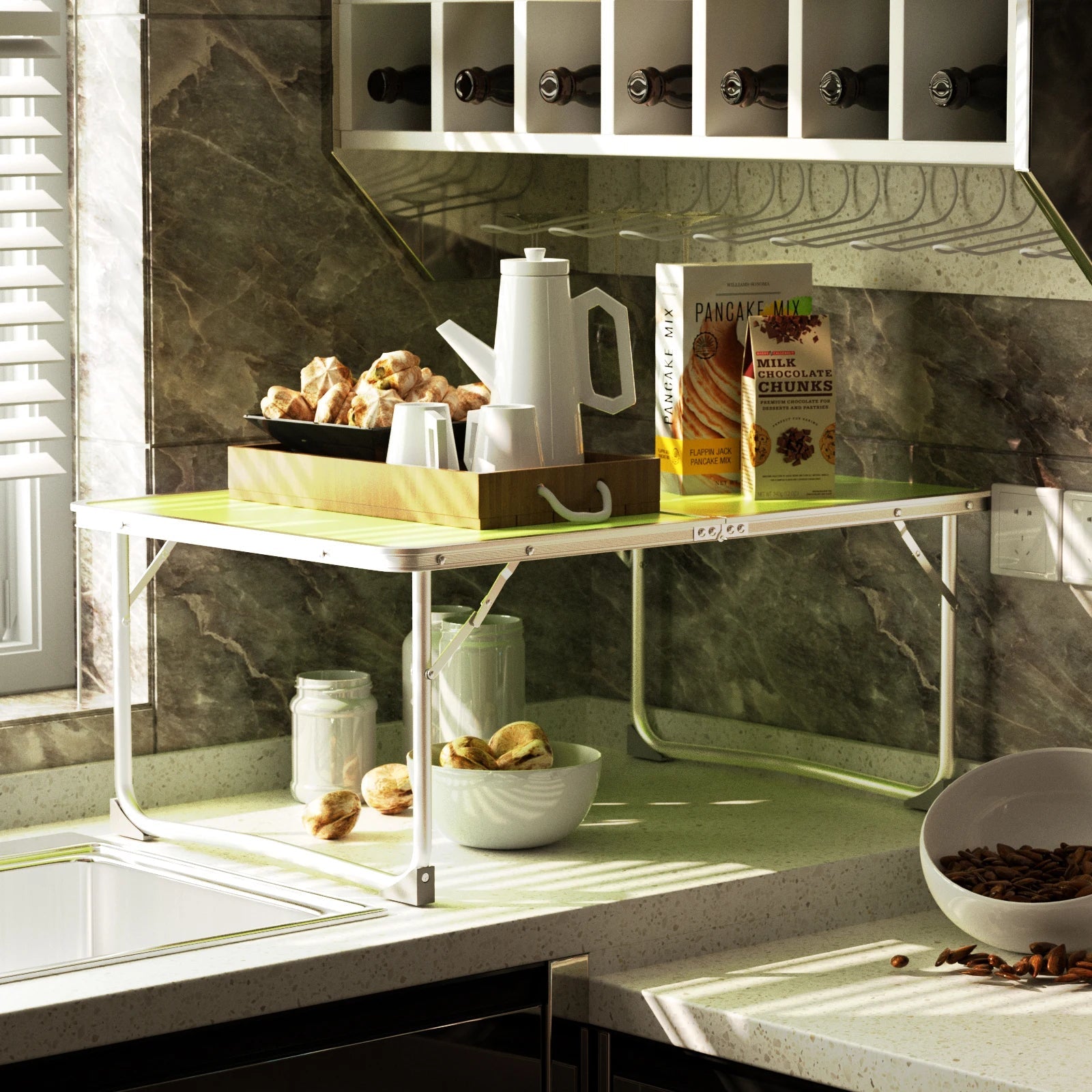 Mini Folding Picnic Table with Carry Handle, Aluminum Frame, Laptop Table for Sofa Bed Couch Floor, 60x40x24cm, Green/White