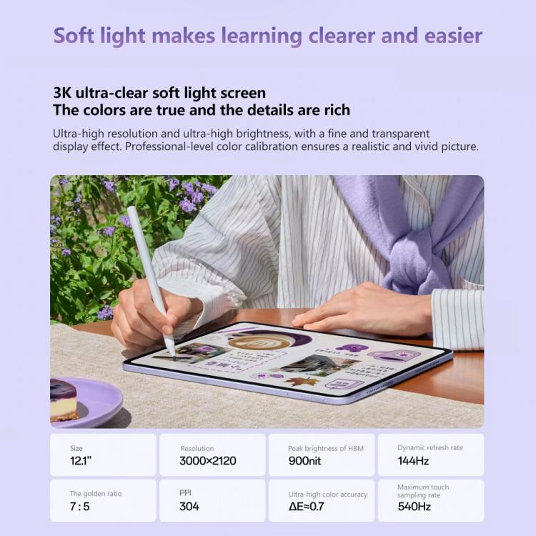 1. Dimension: 266.93x193.35x5.99mm 2. Weight: 579g 3. Display: 12.1 inch LCD screen, 3000x2120 resolution, up to 144Hz...