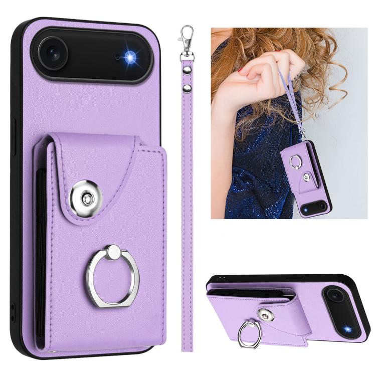 Organ Card Bag Ring Holder PU Phone Case with Lanyard