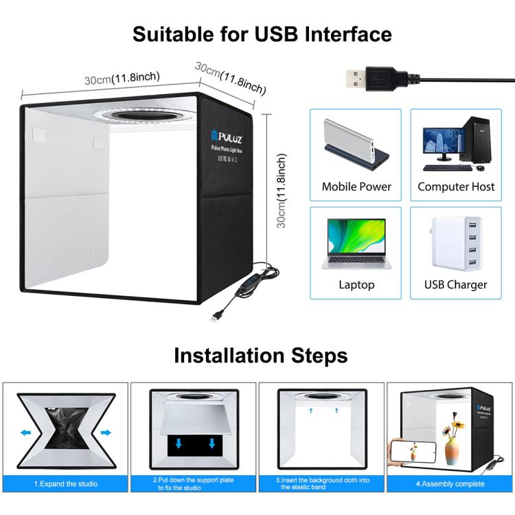 3. Easy to assemble (use it after three seconds of assembly), you can unfold this LED lightbox studio and place it on any surface to get very good backdrop for small articles business photography, taking pictures for products.