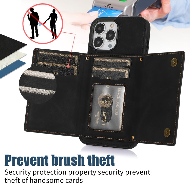 Three-fold RFID Leather Phone Case with Lanyard, For iPhone 14 Pro Max, For iPhone XR, For iPhone XS, For iPhone XS Max