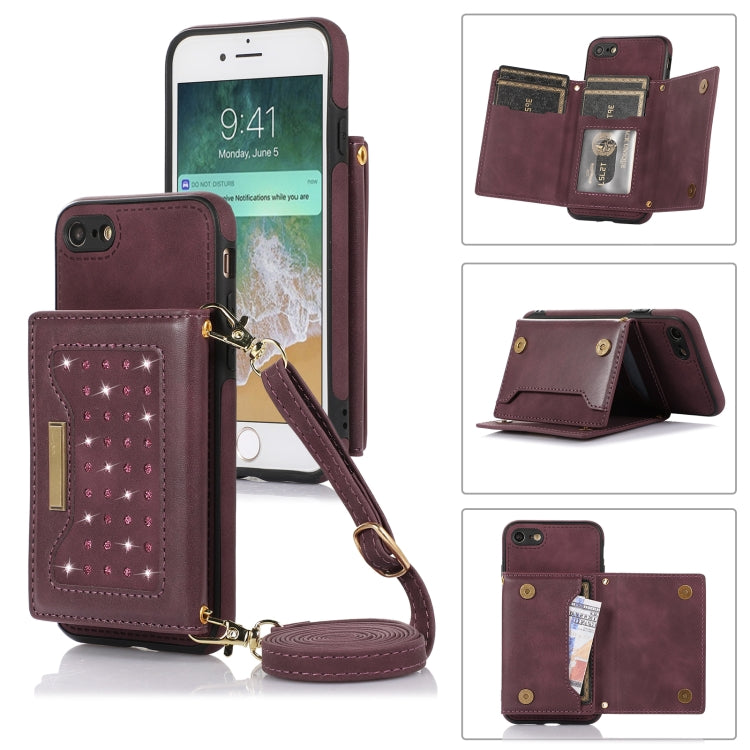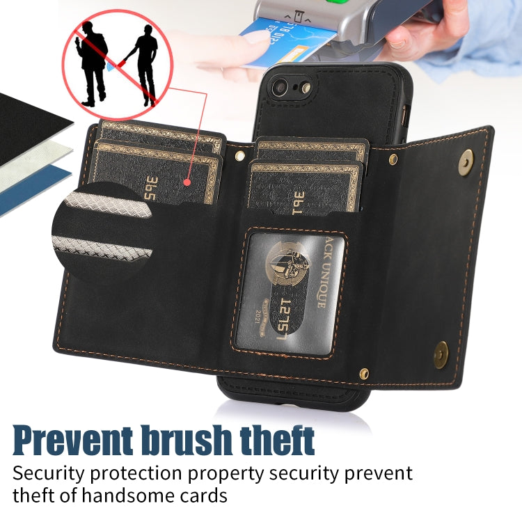 Three-fold RFID Leather Phone Case with Lanyard, For iPhone 6/6s, For iPhone 6 Plus, For iPhone 7/8/SE 2020/SE 2022, For iPhone 7 Plus/8 Plus