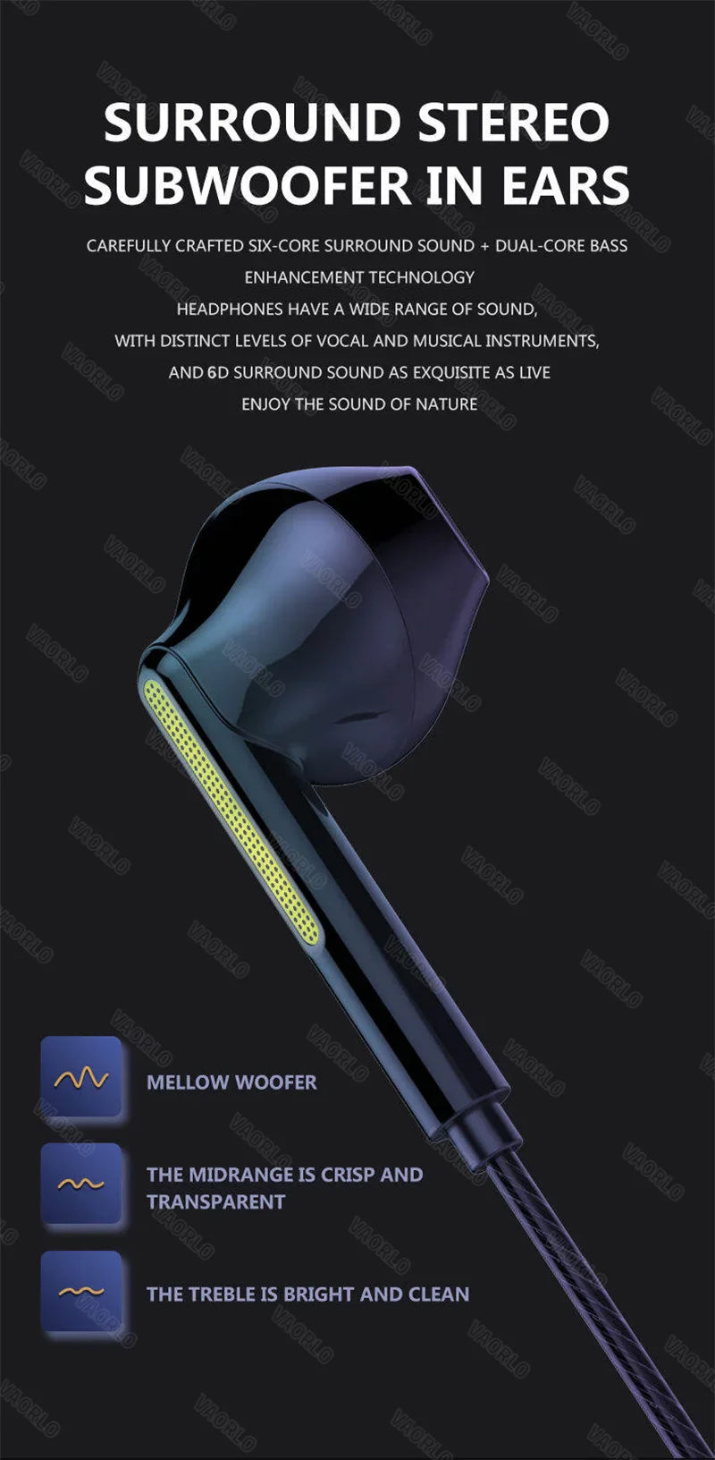 Feature 2: Wired Headphones Heavy Bass In Ear Headphone with Mic Stereo Mobile Earphone Earbuds Wire Game Headset 3.5mm Phone Earphones